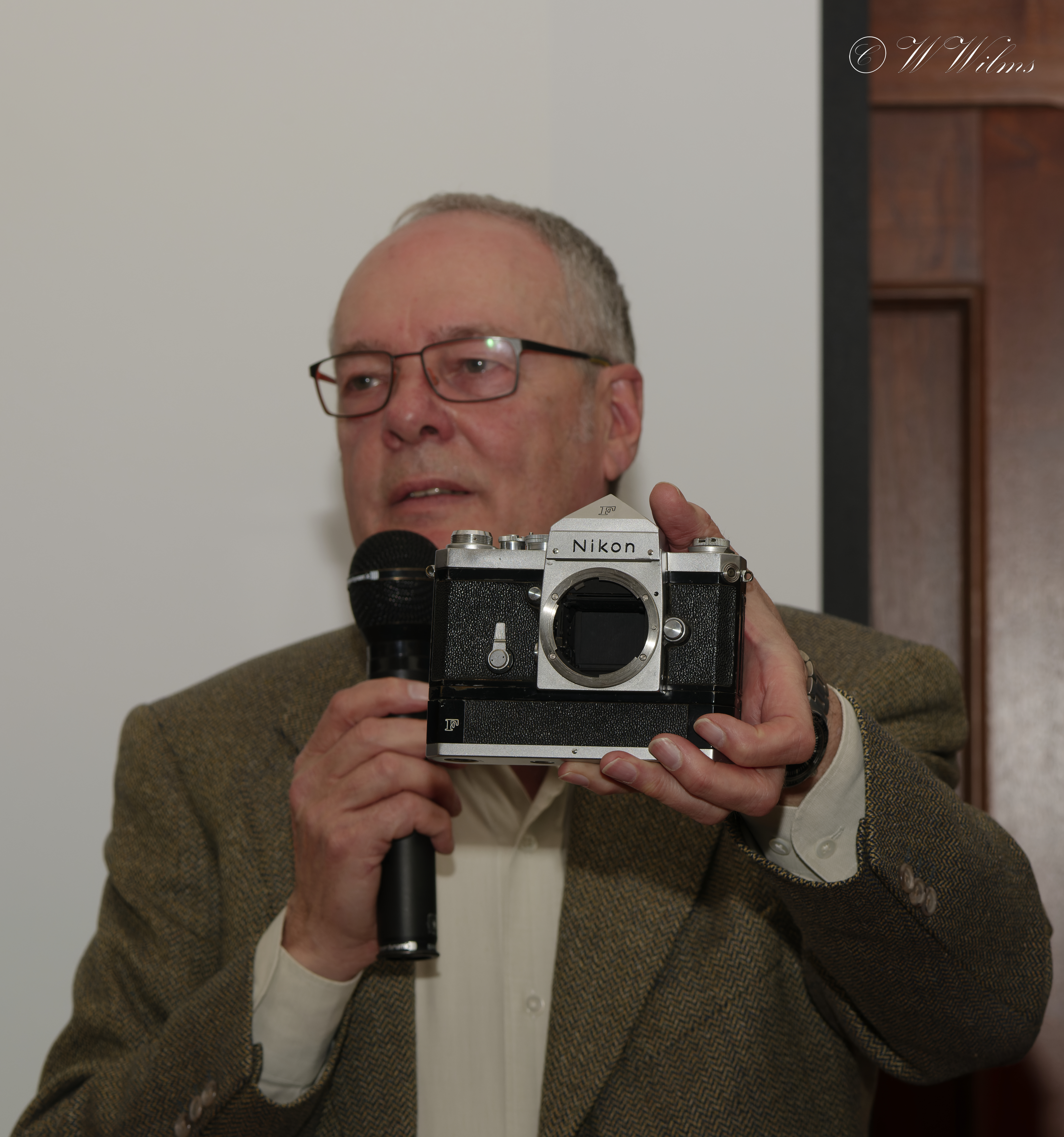 Mit Rütger Teuscher fand ein weiteres NCD-Mitglied den Weg zur Eröffnungsfeier. Schnell füllte sich der Saal, es gab bei den hundert geladenen Gästen nur fünf Absagen. Viele Besucher brachten ihre Nikon F mit oder eine andere Nikon-Kamera. Daraus entwickelten sich schon vorab viele Fachgespräche unter „Gleichgesinnten!“ Es folgte die Begrüßung durch den Museumsleiter Jens Scheller, als zweiter Redner kam Klaus Hoffmann zu Wort, gleichzeitig im Vorsitz des Förderkreises Freilichtmuseum Hessenpark e.V. Sein Grußwort und Dank ging auch an die weiteren Fördermitglieder des Vereins, denn die Planung und Umsetzung dieser Sonderausstellung in Höhe von 10.000 Euro musste erst einmal gestemmt werden.