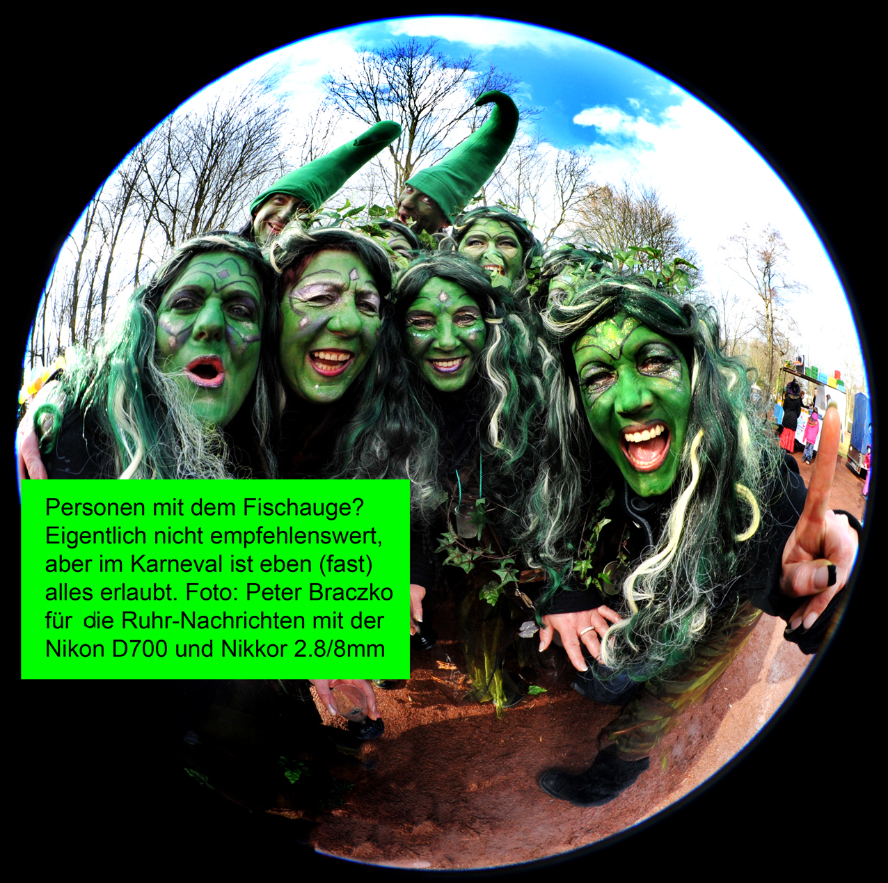 Hier noch ein Beitrag mit dem immer noch fantastischen Nikkor 2.8/8 mm. Wer erinnert sich noch vom NCD an unsere dritte Nikon-Fotoschau bei Foto-Frey in BOT - so Mitte der Achtziger? Da lieh uns Nikon als Ausstellungsstück das gigantische Nikkor-Fischauge 2.8/6 mm, damals das "weitwinkeligste Serienobjektiv der Weltproduktion!" Ein Mitglied von uns (Zitat: "Das ist doch kein Problem für mich") überschätzte sich deutlich, als er das schwere Nikkor 2,8/6 mm aus der Schaufensterauslage holen wollte. Er beugte sich von oben in die Kameraschau, aber in halber Höhe versagten leider seine Kräfte und das teure Objektiv krachte in die innere Seite der Schaufensterscheibe. Ich fragte dann nach dem lauten Geräusch: "Welche der beiden Scheiben ist jetzt kaputt?" Beide Gläser hatten das glücklicherweise überlebt! Hätte gerne gewusst, ob die Versicherung da mitgespielt hätte? Das wäre extrem teuer geworden. Mittlerweile stehen 6-mm-Objektive dieser Bauart mit 40.000 bis 60.000 Euro im Angebot. Einmal gab mir Nikon das Sechs-Millimeter für Vergleichsfotos zur Ausleihe - ohne Stativ problematisch, aber mit sind wiederum die Stativbeine auf dem Bild zu sehen. Das Nikkor 2.8/6 mm nannten einige Nikon-Mitarbeiter übrigens wegen der ungewöhnlichen Bauart "unsere Bratpfanne!" Nachfrage: Besitzt das Nikkor 2.8/6 mm ein NCD-Mitglied oder kennt einen Nikon-Fan, der sich das einmal kaufte?