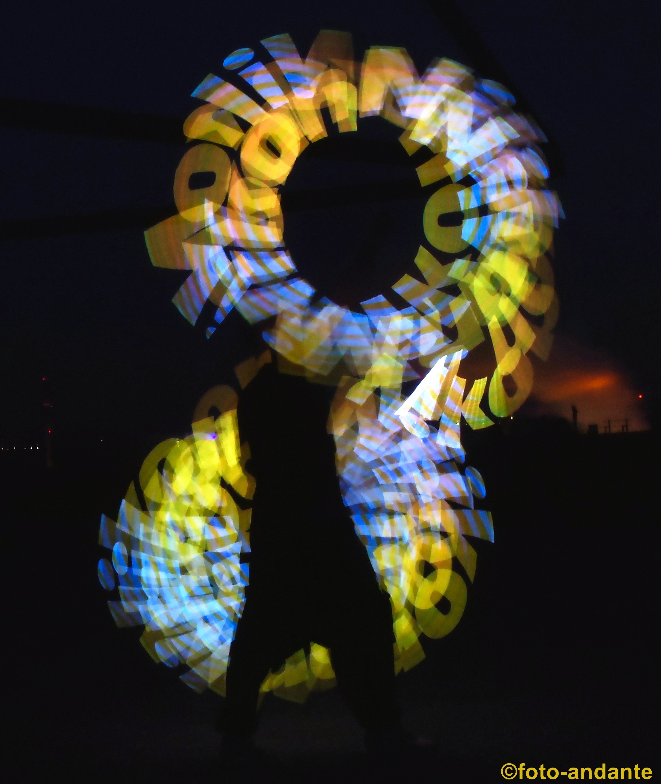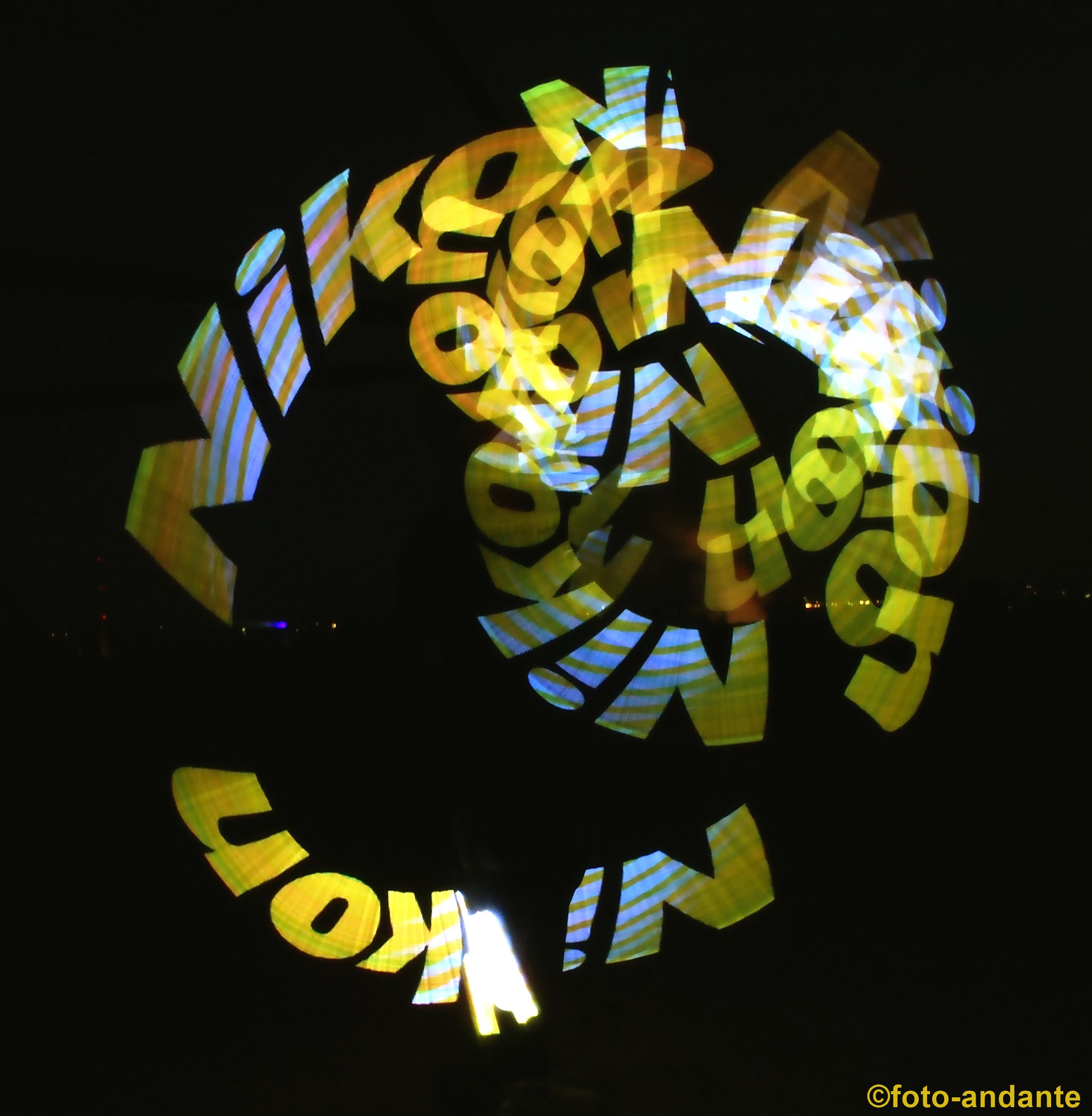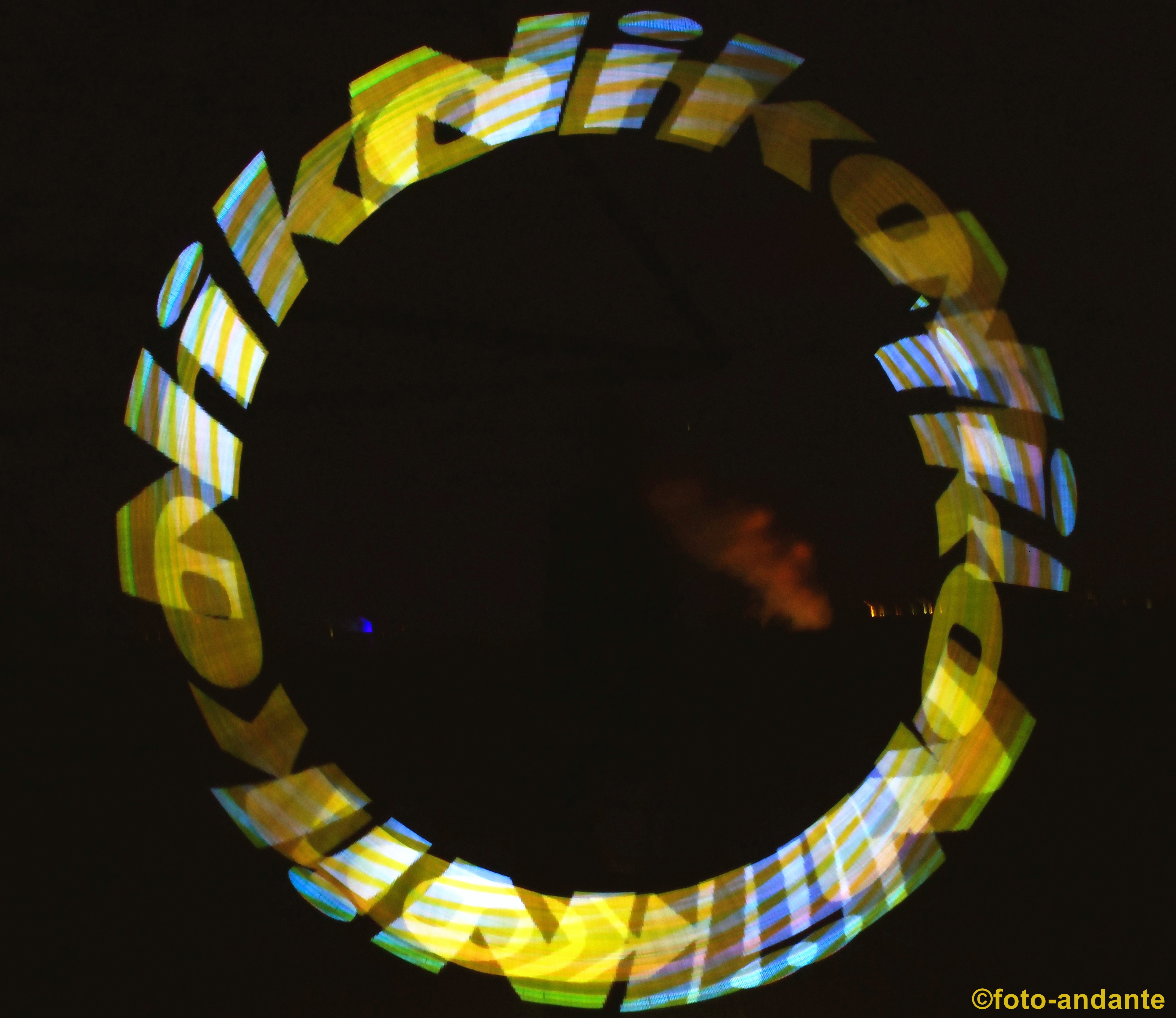 Der Lichtkünstler Joel (Incendium23) zauberte extra für uns Nikon-Bilder in den Nachthimmel. Die LED-Leuchstäbe sind programmierbar und werden mit einer App über das Smartphone gesteuert. Ich habe mich bewusst dafür entschieden, nur die farbenfrohen Lichtspiele zu fotografieren ohne das ein Hintergrund erkennbar ist, oder nur schemenhaft.