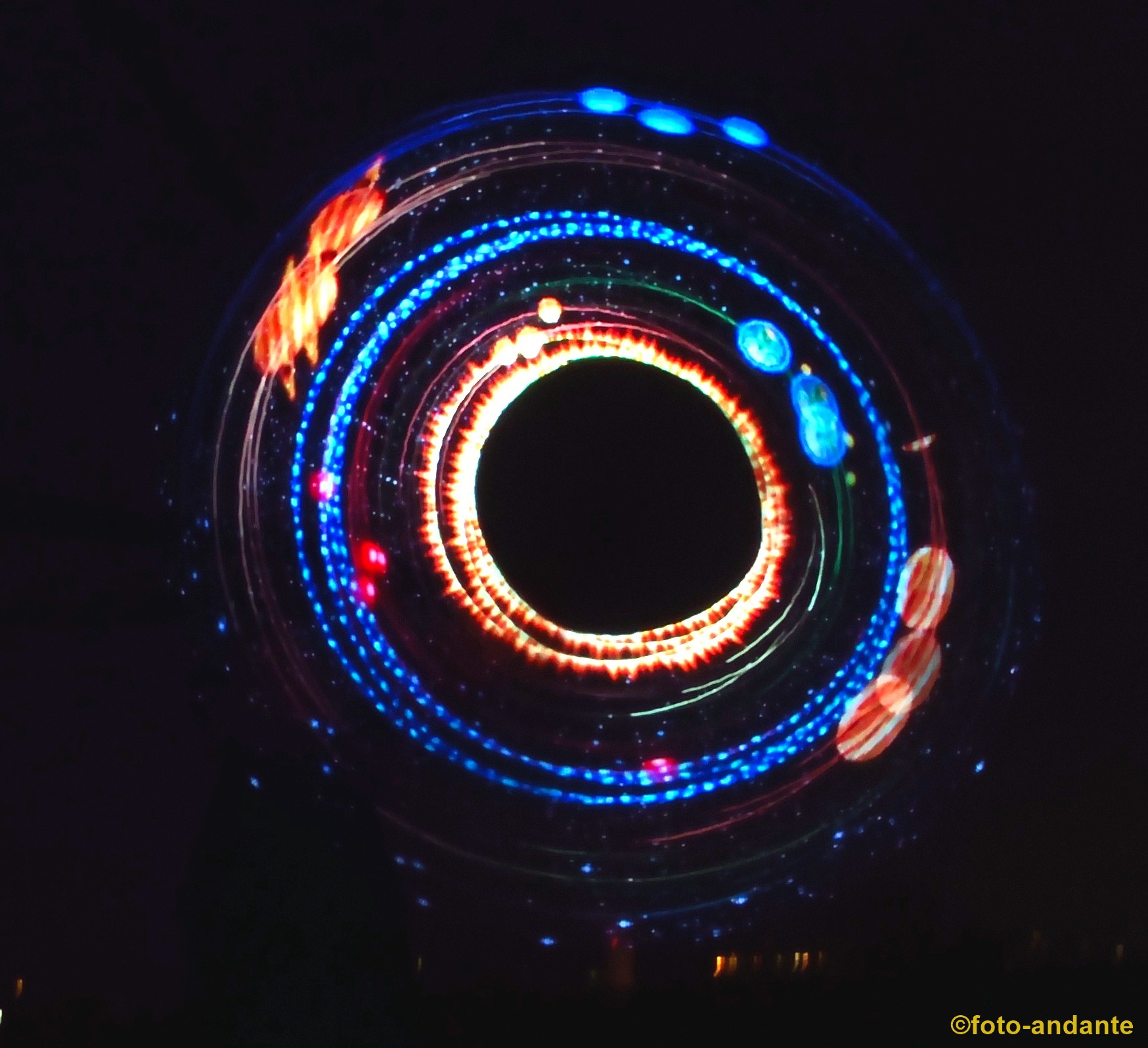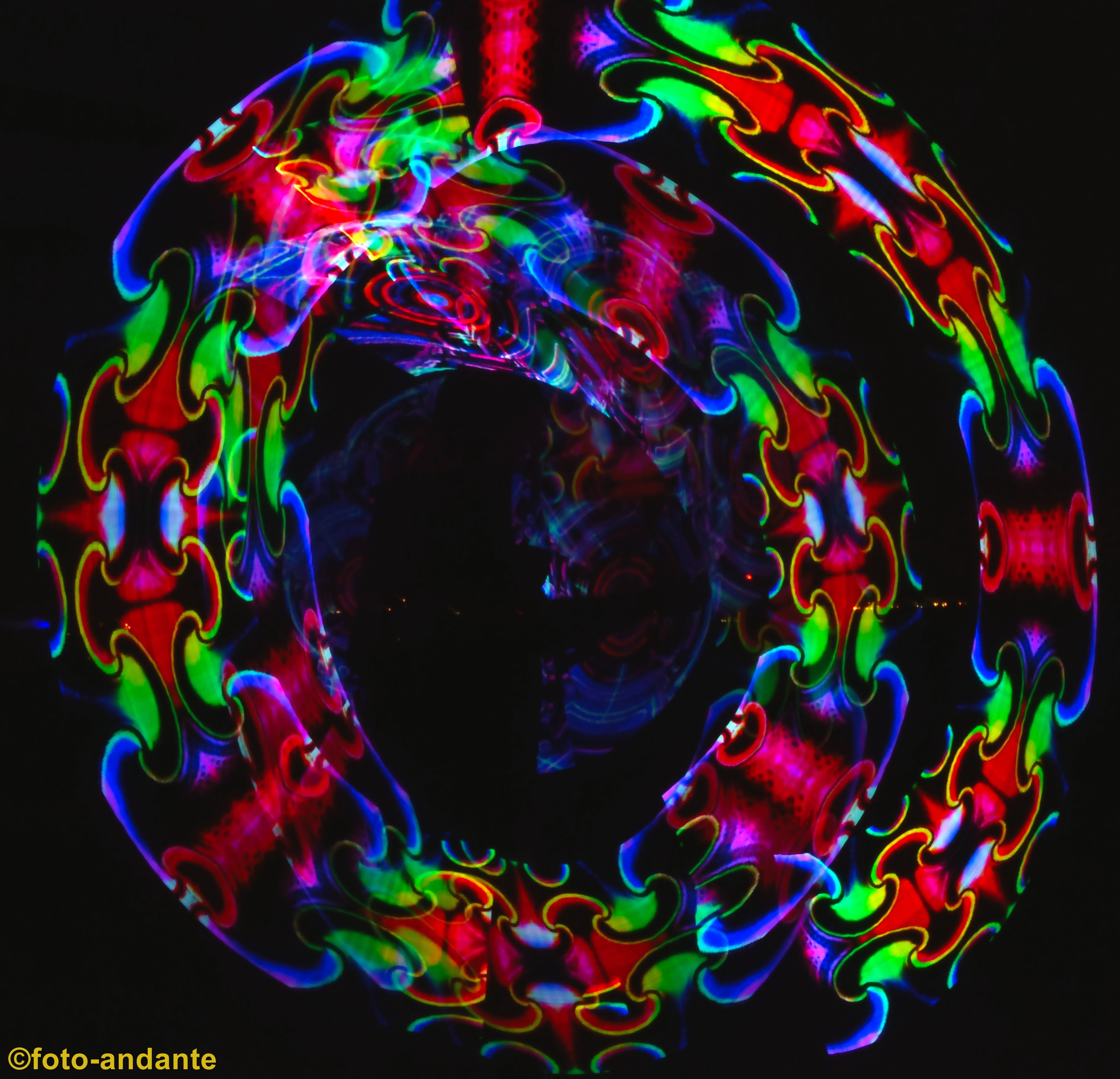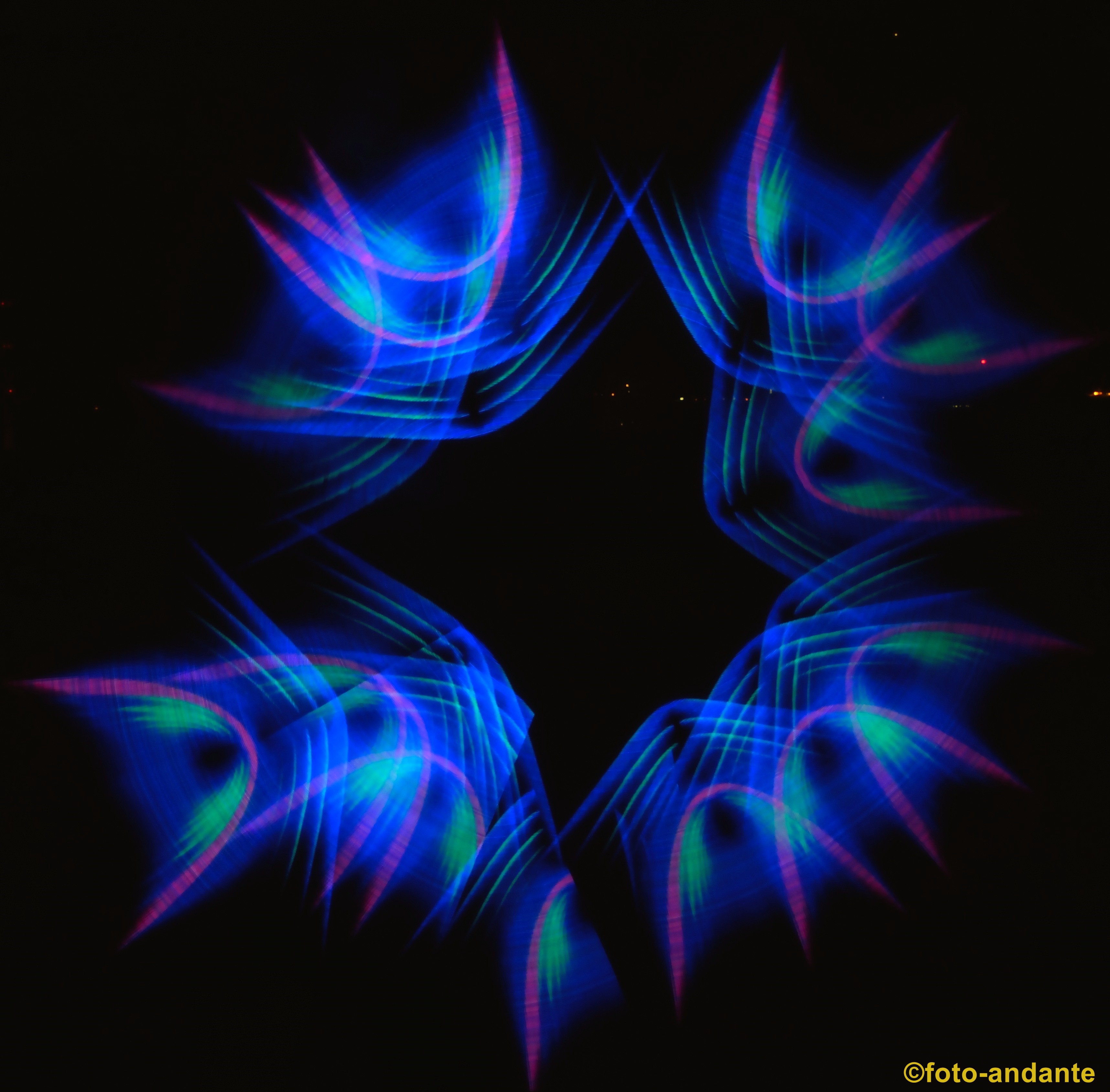 Der Lichtkünstler Joel (Incendium23) zauberte extra für uns Nikon-Bilder in den Nachthimmel. Die LED-Leuchstäbe sind programmierbar und werden mit einer App über das Smartphone gesteuert. Ich habe mich bewusst dafür entschieden, nur die farbenfrohen Lichtspiele zu fotografieren ohne das ein Hintergrund erkennbar ist, oder nur schemenhaft.
