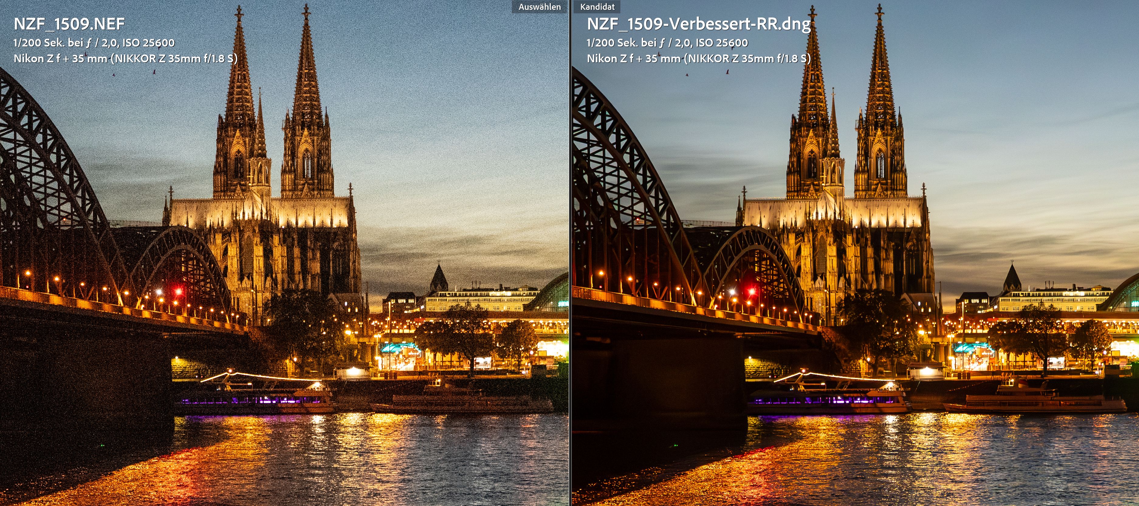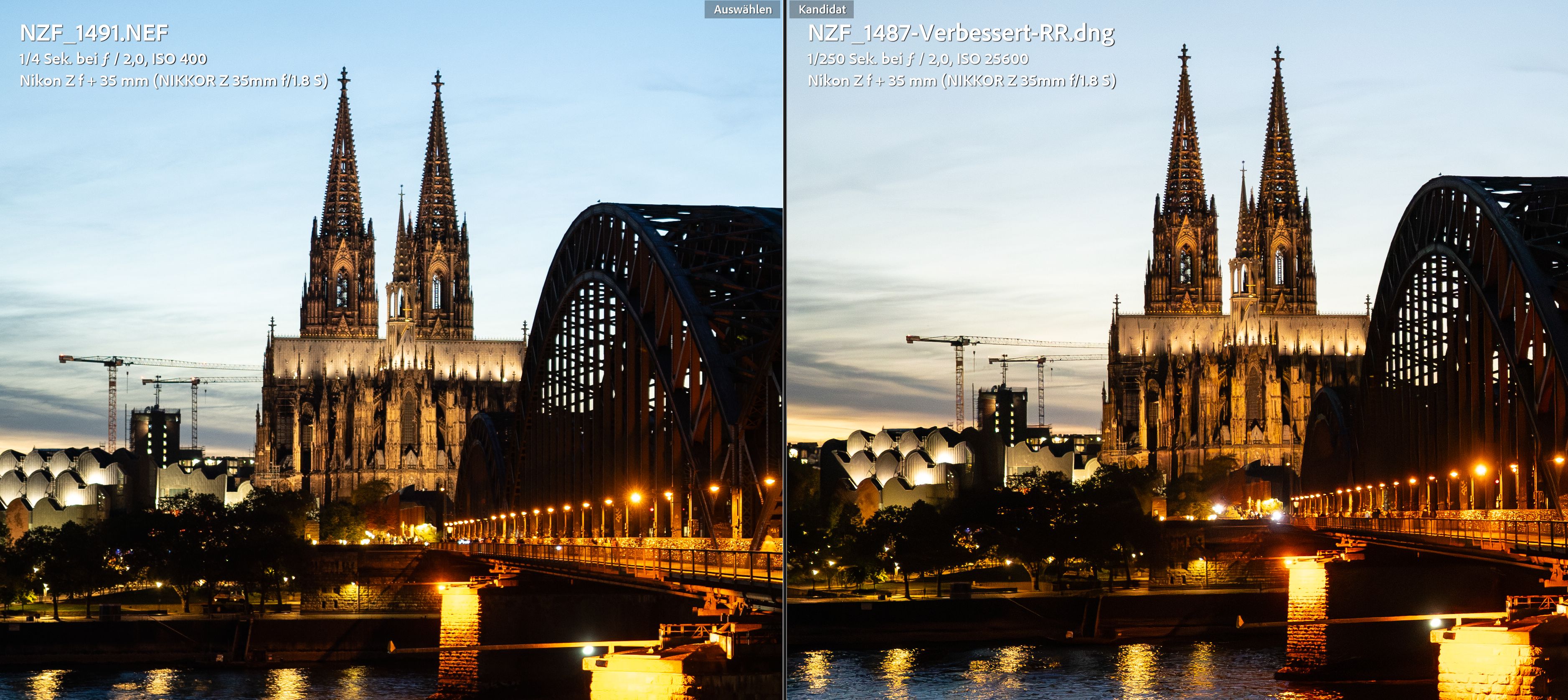 ISO 25600 entrauscht ist schon verwertbarer - auch wenn die KI noch etwas merkwürdige Strukturen in die Domfenster zaubert