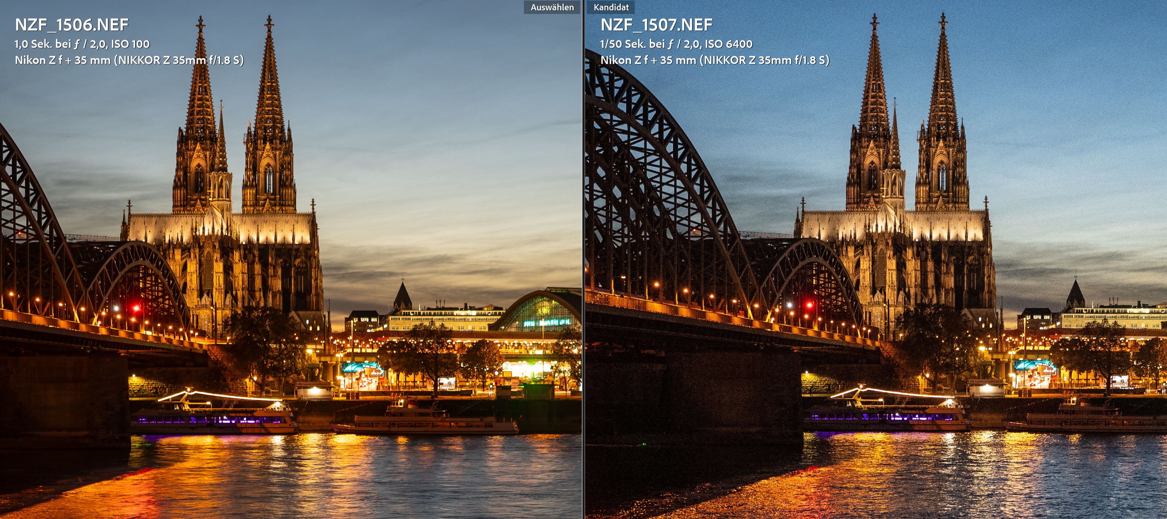 ISO 51200 KI-entrauscht ist im Vergleich zu ISO 400 "ohne" etwas in den Details reduziert