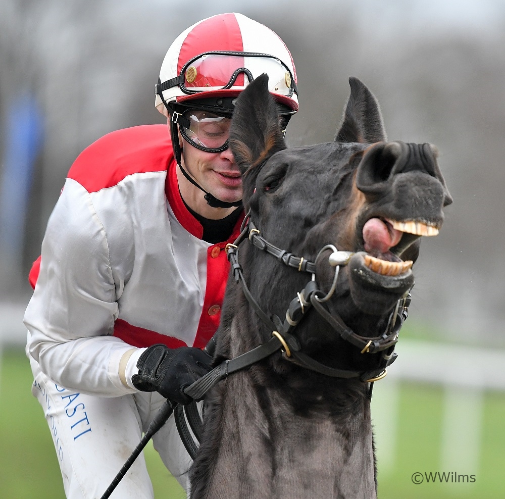 Erzähl, wieso? Das bist ja nicht Du als Jokey ...