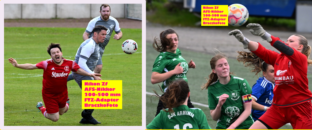 Das Bild links zeigt ein "Männerfußballspiel" am Samstag davor in Gelsenkirchen-Horst, ebenfalls festgehalten mit der Nikon Zf